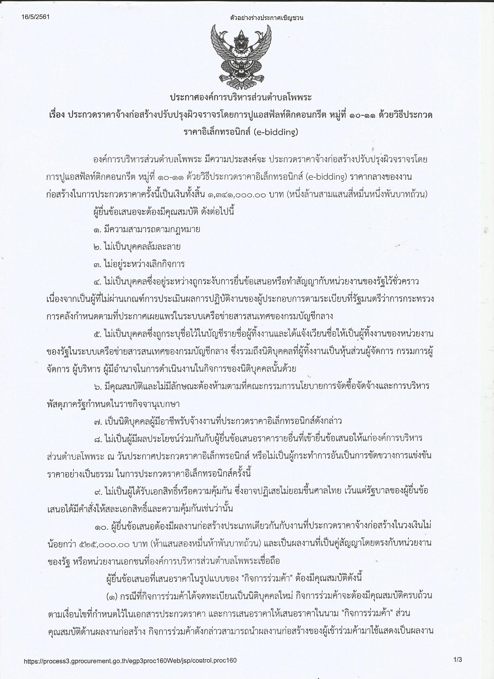 ประกาศราคากลางโครงการปรับปรุงผิวจราจรโดยการปูแอสฟัลท์ติกคอนกรีต หมู่ 4